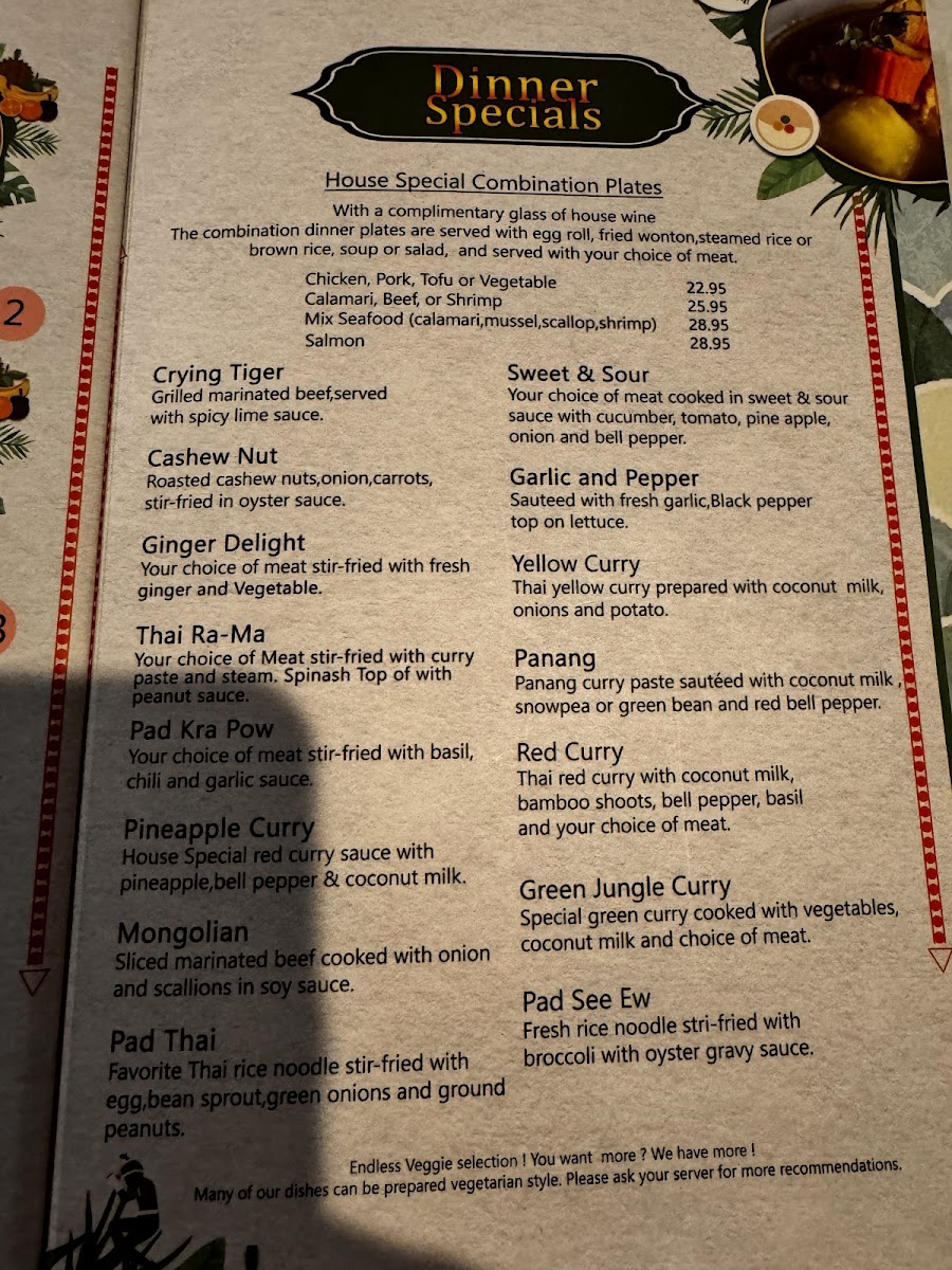 One of the highlights of this restaurant is their extensive curry selection, including Green Jungle Curry and Yellow Curry, each bursting with bold flavors and aromatic spices.